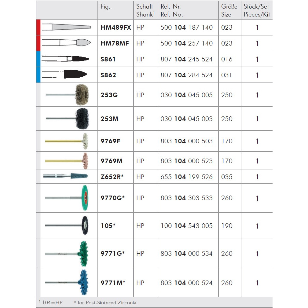 Zirconia Finishing Kit er utviklet av Dr James Klim, og er en kombinasjon av ulike hardmetallbor, en diamanter og polerere. Disse utvalgte instrumentene er godt egnet for etterbehandling av zirconia restaureringer. Enkel oppbevaring i boroppsatsen.